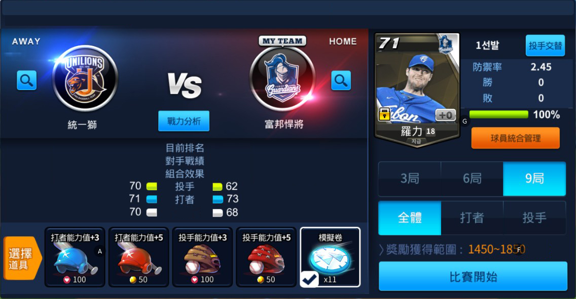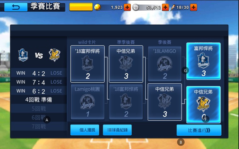 季賽模式中當比賽結束,系統會根據玩家在賽前選擇的比賽局數與自動方式給予獎勵,若想要獲得更多獎勵,建議玩家可以選擇手動進行比賽,獲得的獎勵多更多!喜愛棒球的玩家們,讓我們一起邁向冠軍,打造獨一無二的專屬球隊,未來還會釋出更多遊戲消息,敬請密切關注粉絲團!
