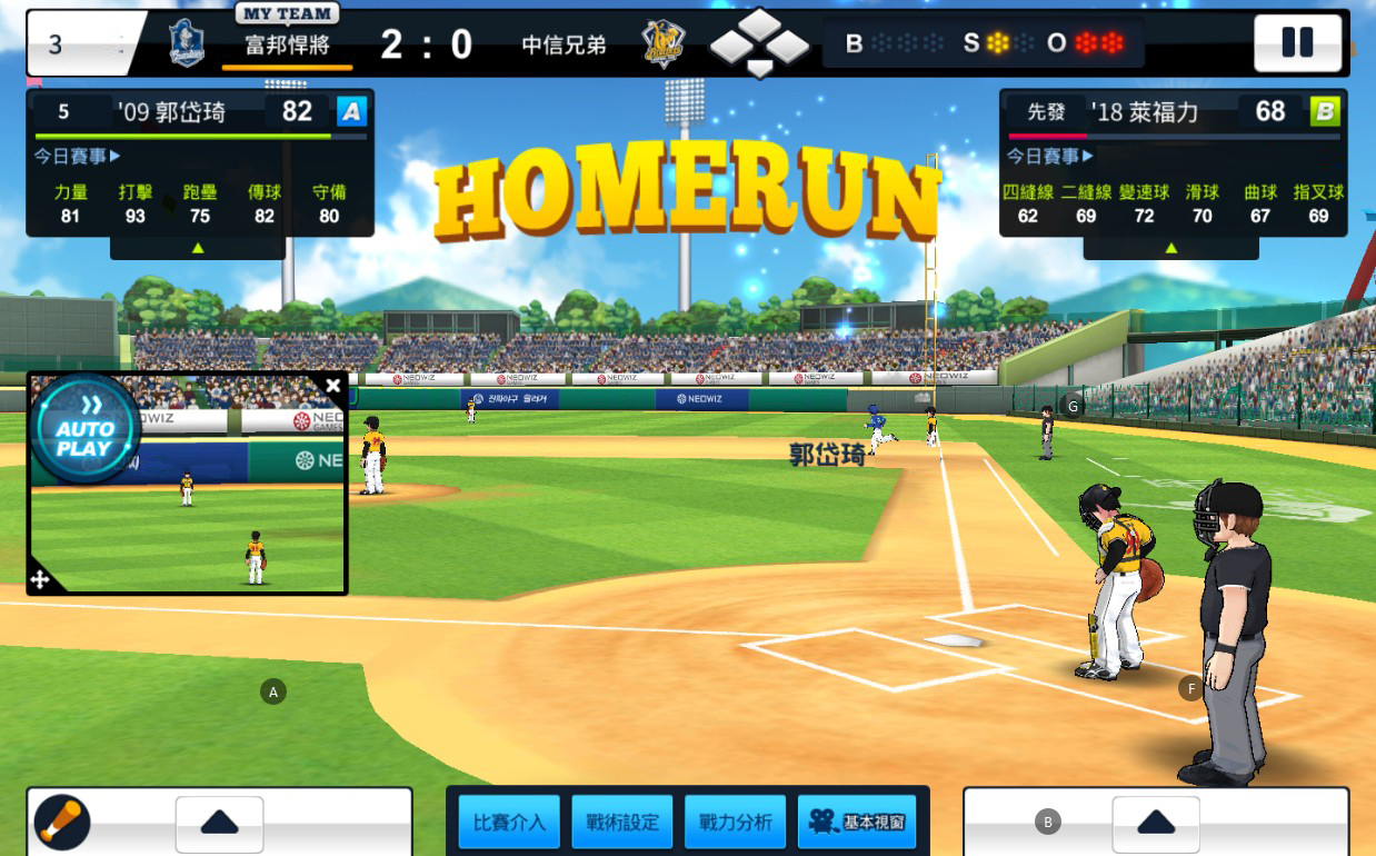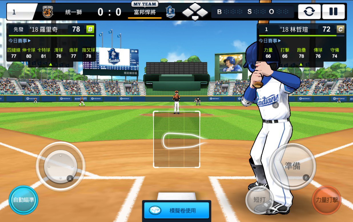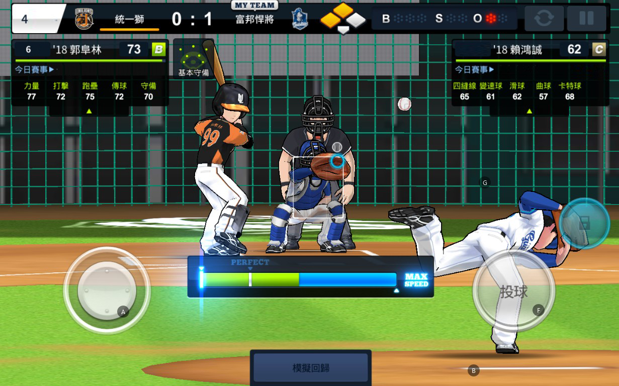 在《棒球大王》的季賽模式中,玩家可選擇自動投球模式,並在確認球種後選擇想要投球的位置,最後將量條控制在PERFECT區域中就能完美投球。如同球員在牛棚練投般,選中攻擊的角度,精準的投出關鍵一擊,為牛棚守住勝利!更棒的是,玩家還能選擇AI來協助進行比賽,讓你連打連勝,比賽不中斷!