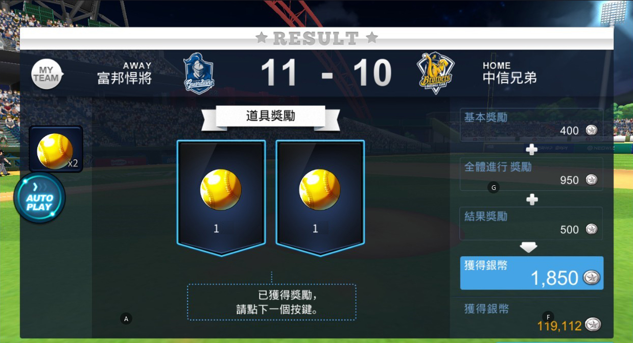 ▲系統根據玩家比賽前選擇的比賽局數與自動方式給予分配的獎勵